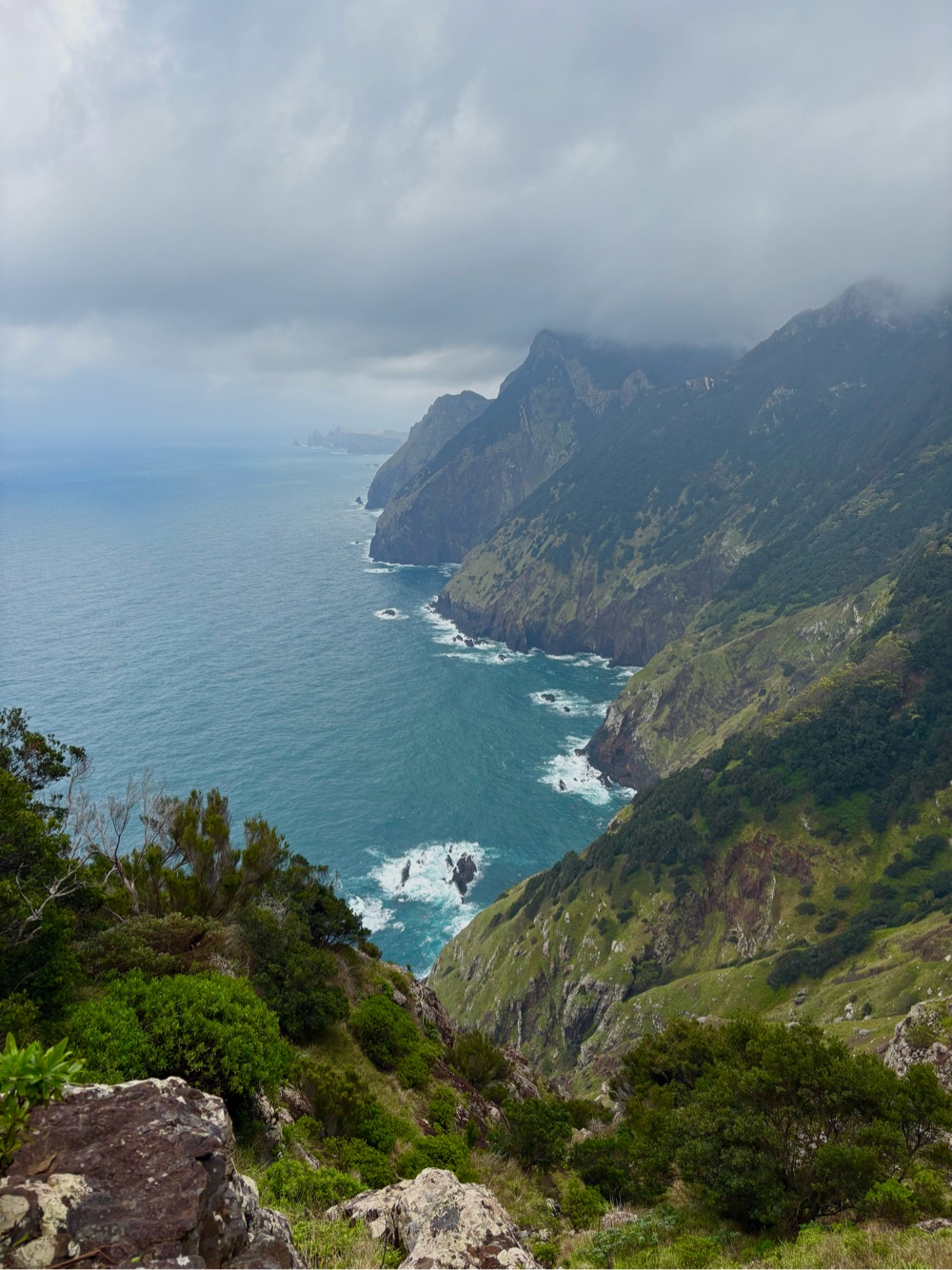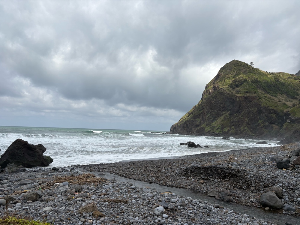 We gradually hiked back down the mountainside ending on the stone beach in Porta da Cruz.